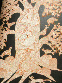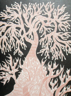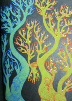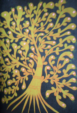 나무 가지는 제멋대로 뻗어 나간 듯하지만, 어떤 형식을 갖춘 듯하기도 하고, 나무 가지 끝에는 반딧불이 앉아 있어서 황금빛으로 빛나고 있기도 하고, 새들이 앉아 있기도 하고, 뱀의 머리가 달려 있기도 하고...