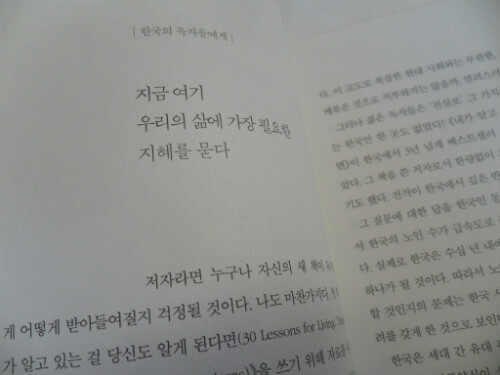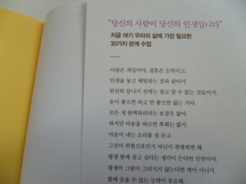 이 책을 읽으면서 삶, 사랑 그리고 사람에 대한 30가지 지혜를 이 책을 통해서 생각해 볼 수 있는 시간이 되었다.
