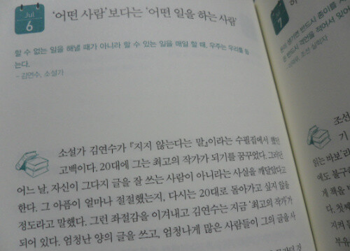 하루 한 장씩 읽으면서 공부를 해야 되겠다는 마음을 다지는 책이라는 생각을 하게 되는데, 실질적으로 삶에서 필요한 것들도 많이 담겨 있다.
