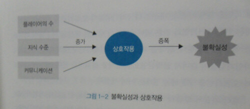 상식을 깨고 영향을 주고받는 인과관계가 시시각각 변화하기 때문에 놀닐적인 예측이 불가능한 상태를 일컫는다." (p.