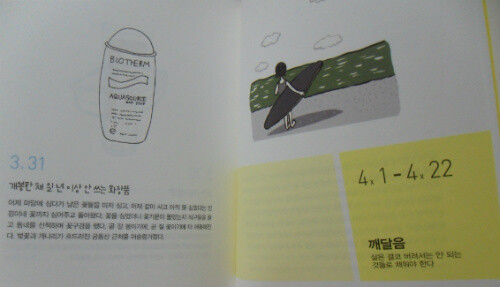 <날마다 하나씩 버리기>도 이와 그리 다르지 않은 발상에서 나온 이야기라고 생각된다. 저자는 자신이 가지고 있는 물건이 쓸모가 없다고 하더라도 선뜻 버리는 성격은 아니다.
