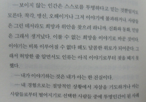 그 이야기들을 작가는 그 이야기의 주인공의 목소리로 들려주지만 그 이야기 속에는 작가 자신의 목소리가 담겨 있다.