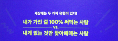 세상에는 두 가지 유형이 있다. 내가 가진 걸 100 써먹는 사람 vs. 내게 없는 것만 찾아 헤매는 사람.
