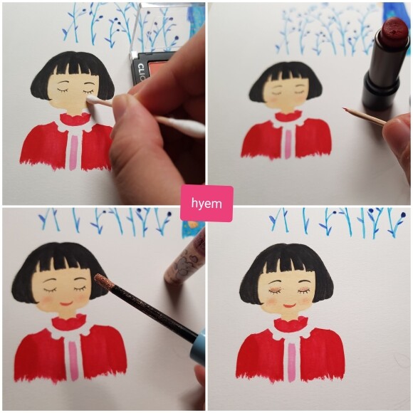색 조합이나 물 농도에 대해 자세히 써주셔서 모자란 솜씨지만 예쁜 소녀들을 그려봤네요.