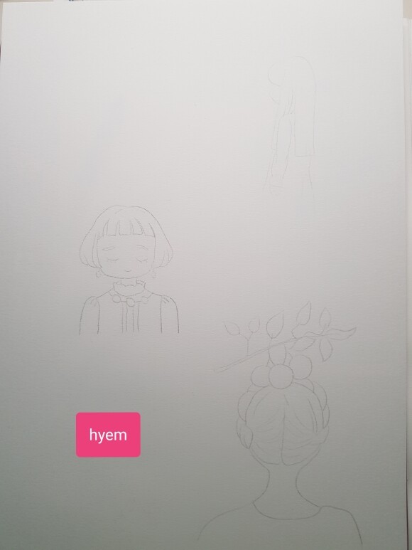 청귤소녀, 푸른들꽃소녀, 파티소녀 요렇게 세 친구를 A4용지에 스케치했어요.