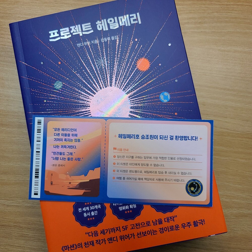 마션의 작가 앤디위어의 우주 3부작 중 신간이 나왔다고 하여 얼릉 신청하게되었다. 서평도서가 도착하고 나니 691페이지의 두꺼운 책이라 깜짝 놀랐다. 과연 다 읽을 수 있을까했는데 읽으면 읽을 수록 라일랜드 그레이스와 외계생명체 로키와의 티키타카가 궁금해서 계속 책장을 넘기게된다.