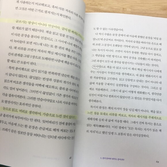남과 다른 나만의 주체적인 생각을 표현하기 위해 '깊이읽기'를 강조한다.