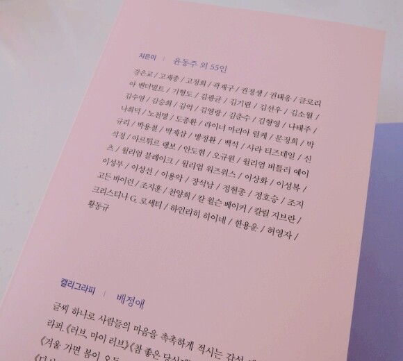 윤동주 외 55인의 시인 지음, 배정애 캘리그라피 / 북로그컴퍼니 / 2019년 3월