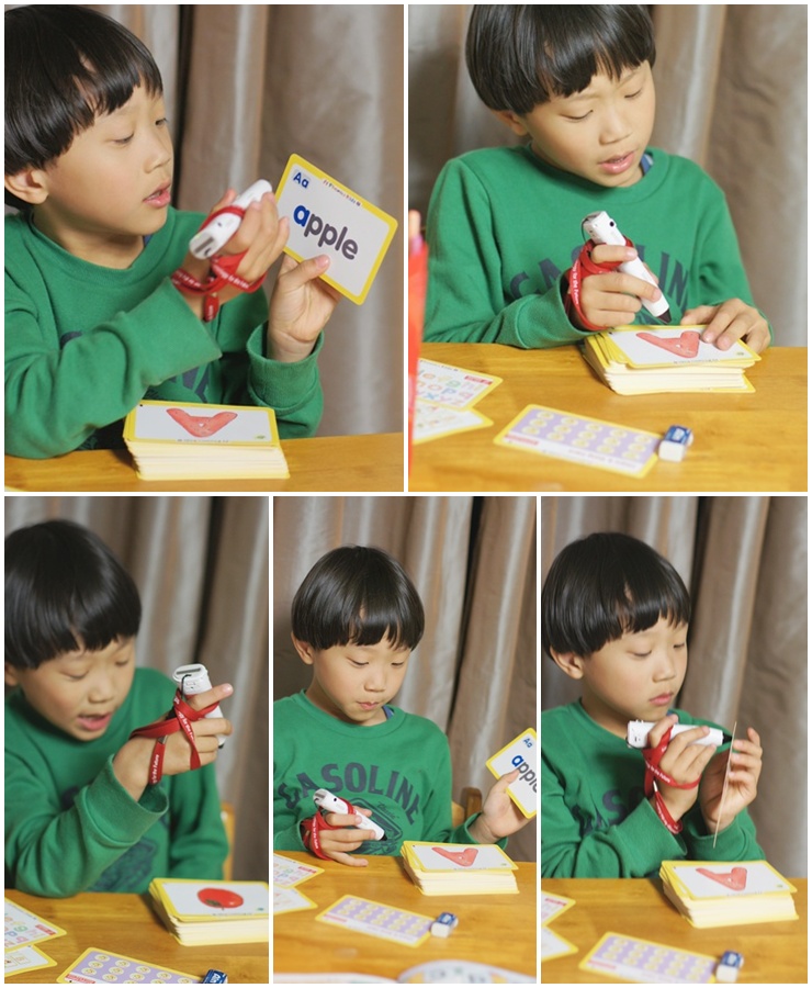 그림 파닉스 카드에 세이펜을 가져다대면
