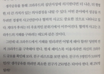 생각공유를 하려면 최소한 친구가 250명은 되어야 한다.