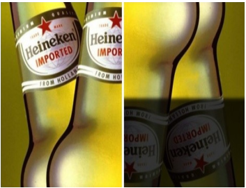 왼쪽이 실제 맥주광고이고, 오른쪽은 광고를 뒤집어놓은 것입니다.
