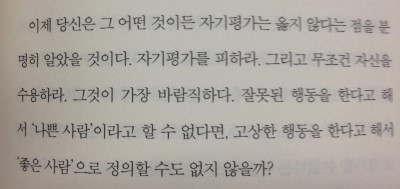 당신이 올바른 행동을 했을 때 자기 자신을 사랑한다는 말은 곧 좋지 않은 행동을 할 때에 스스로를 미워한다는 의미가 아닐까?