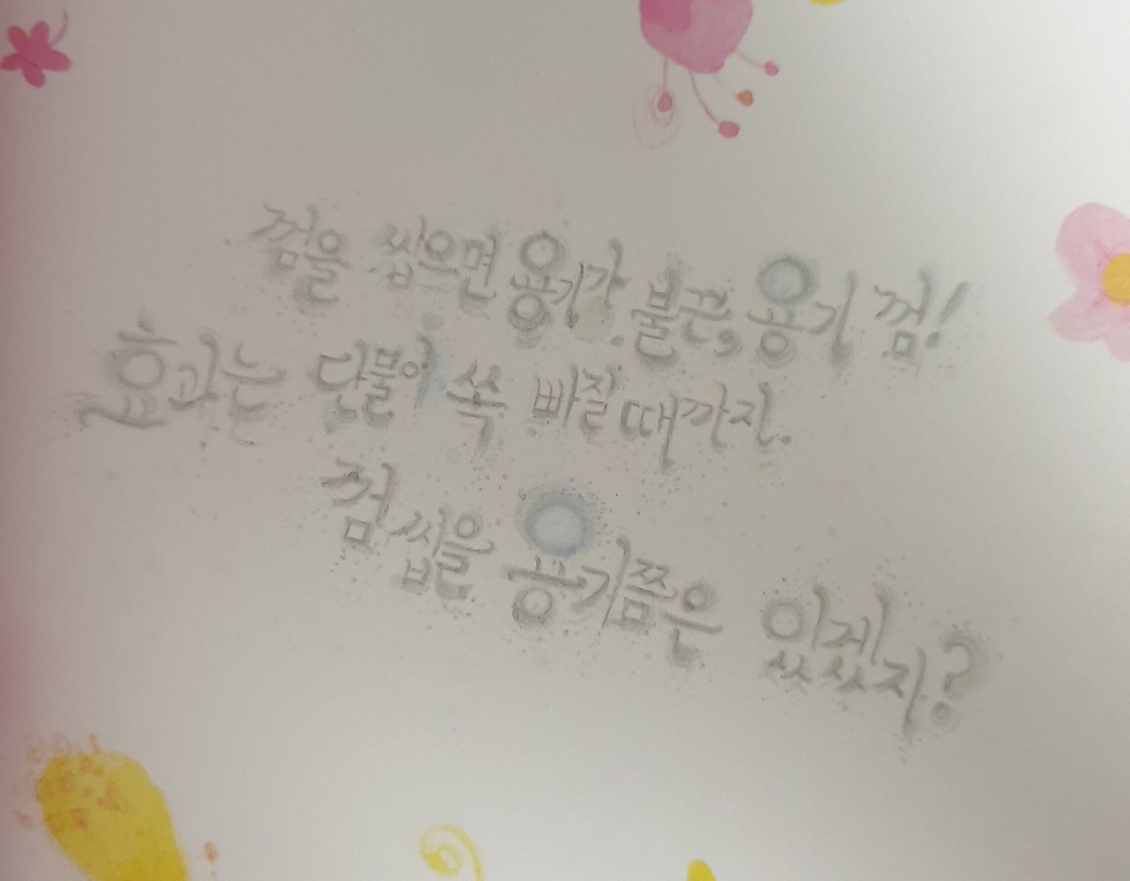 엉뚱한 면으로 친근함을 나타내고 있다. 맞춤법도 틀리고 삐뚤삐뚤...