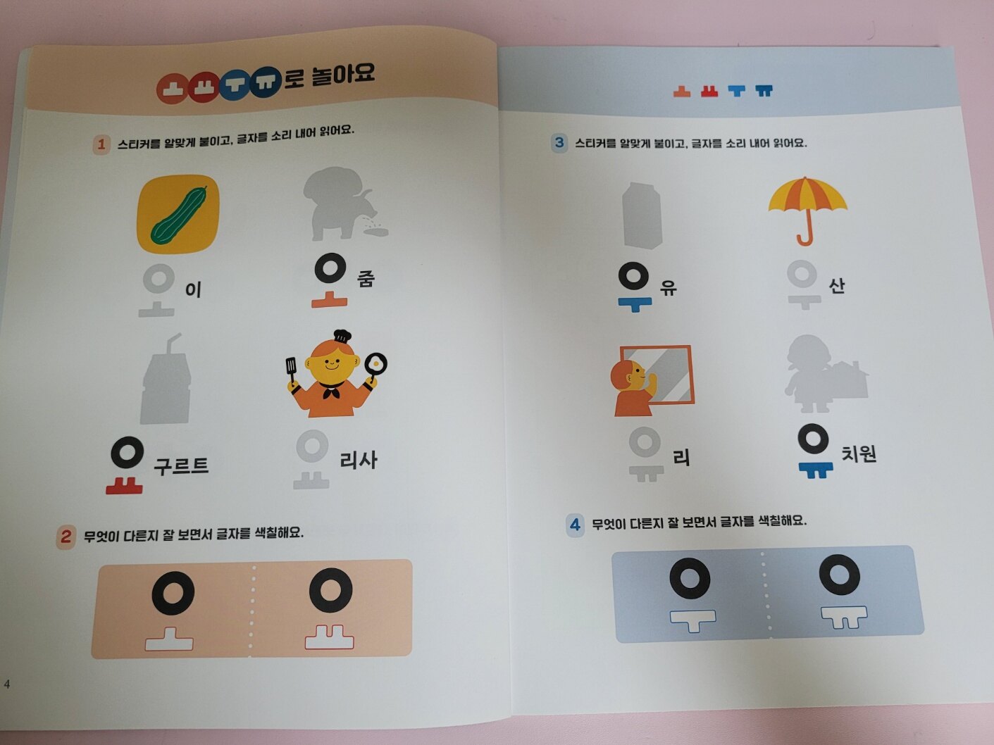 이처럼 색칠을 하는 공간도 있고, 스티커를 부착해야하는 공간간도 있어요.