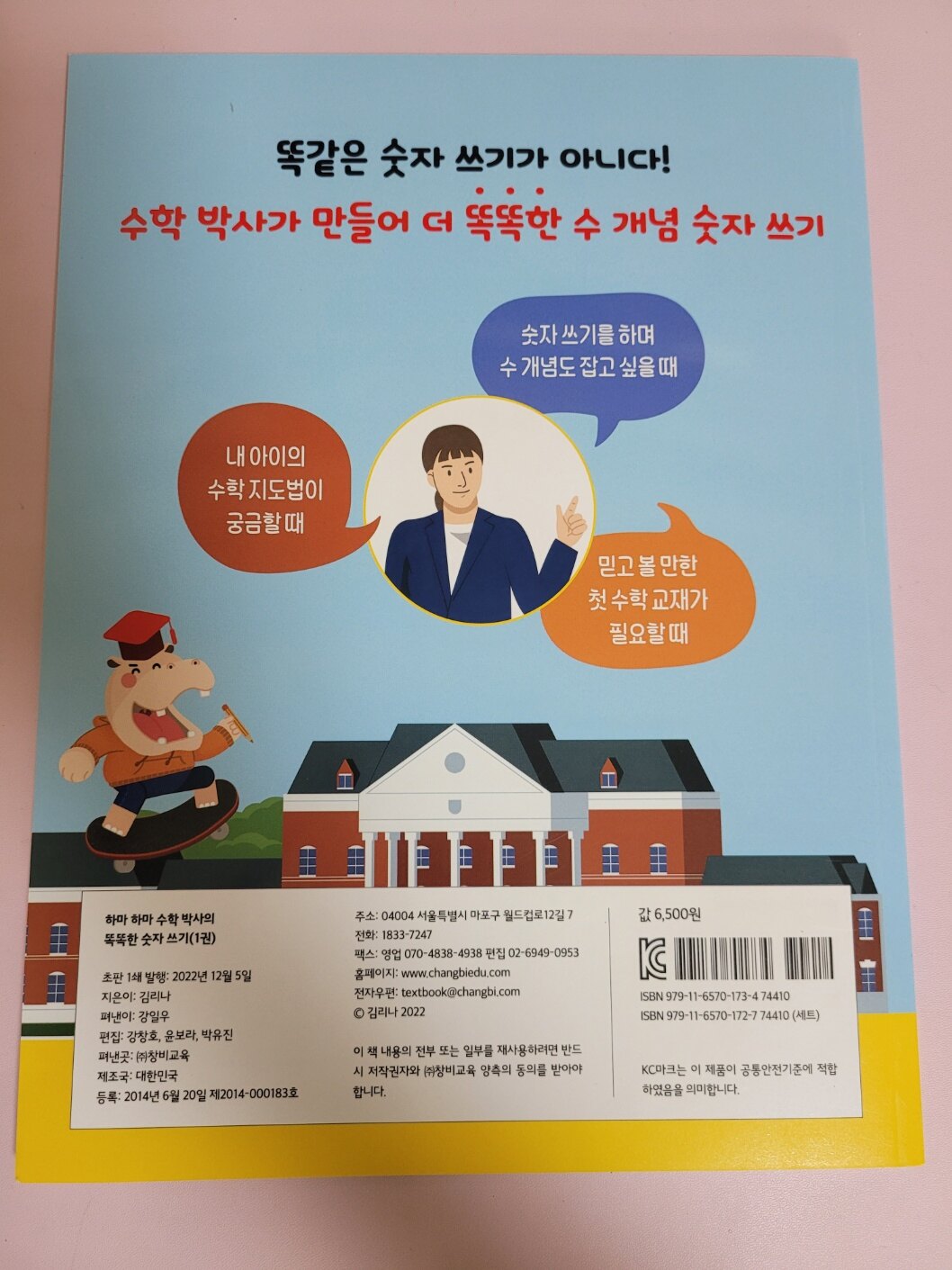 뒷면에는 "수학박사가 만들어 더 똑똑한 수 개념 숫자 쓰기" 라고 되어있어요.