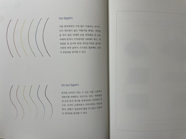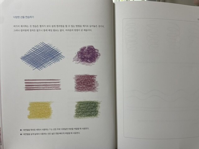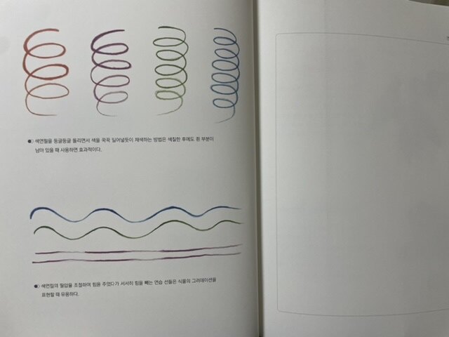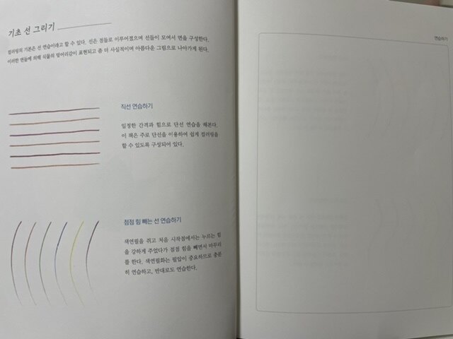 기초선 그리기, 다양한 선들 연습하기, 색칠하기, 쉽게 색칠하는 순서 등