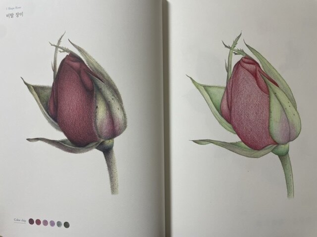 저는 제일 앞에 있는 비탈 장미를 선택해서 폴리크로모스 색연필로 색칠해봤어요