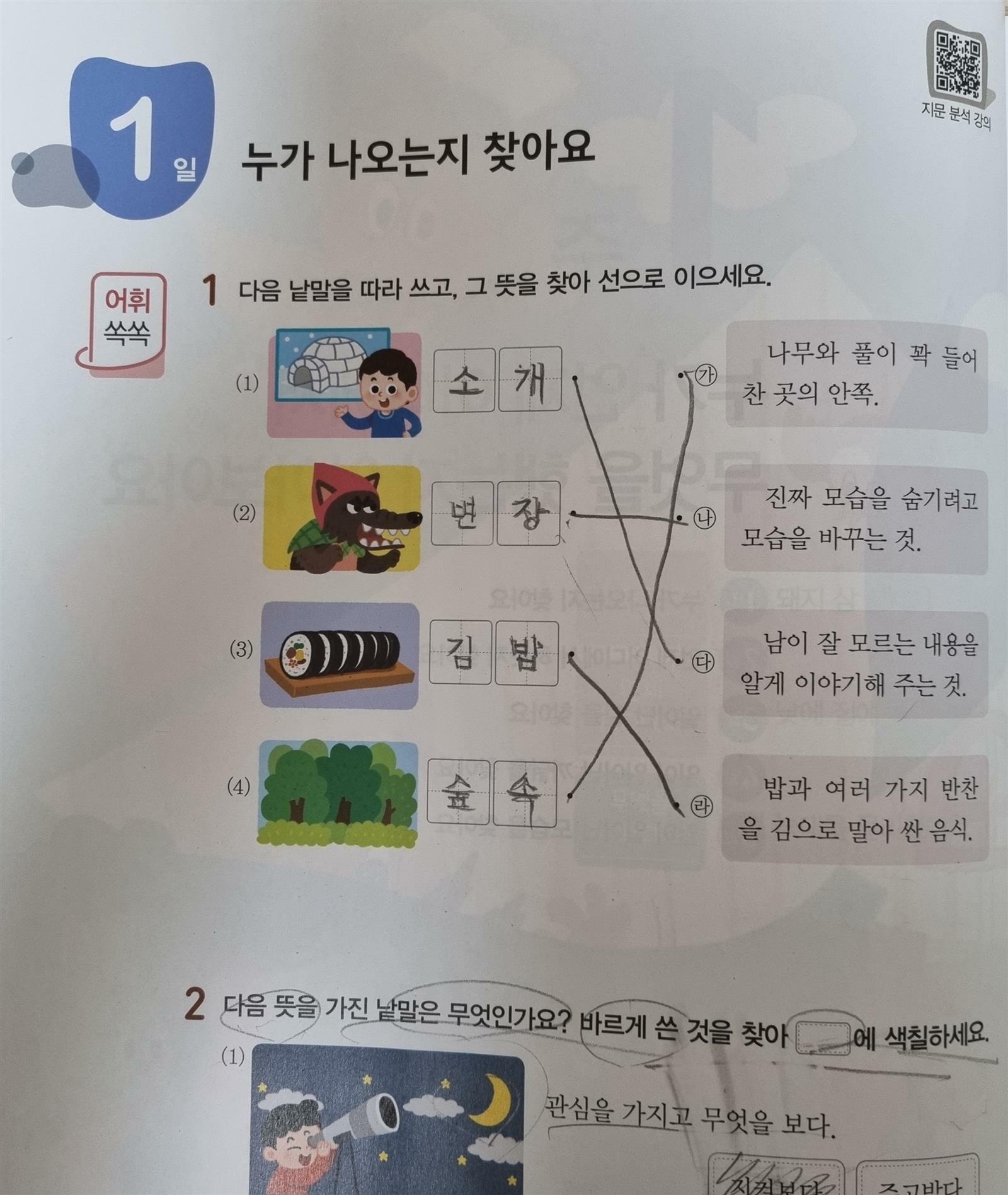 문제풀이를 다한뒤에 QR를 핸드폰으로 찍어서
