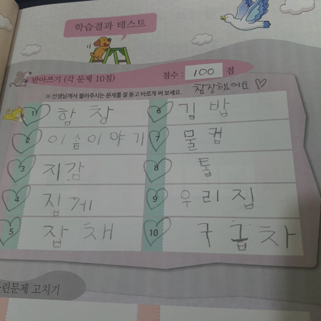 자기 백점 맞았다고 너무 좋아하는 딸램 칭찬 만땅해주었어요