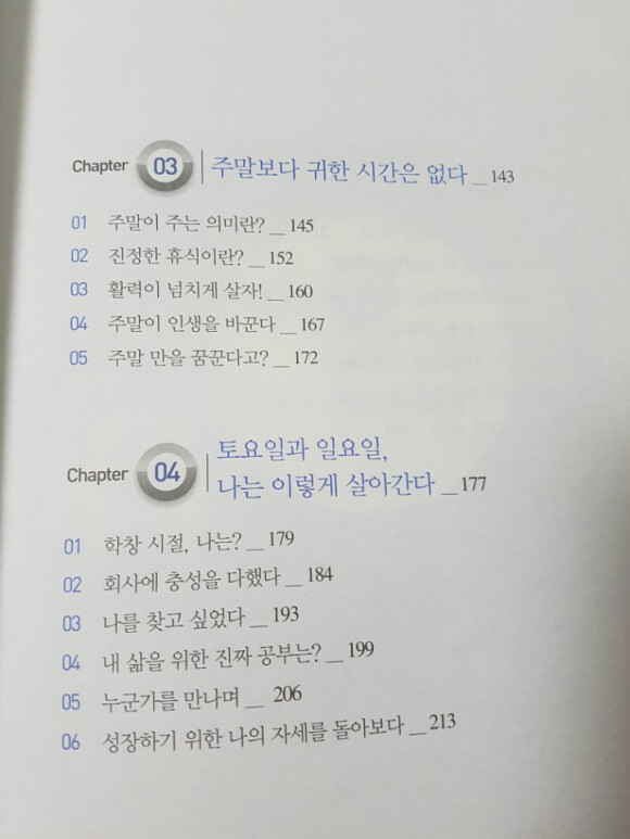 먼저 차례를 살펴보니 나의 주말이 부끄러워졌다.