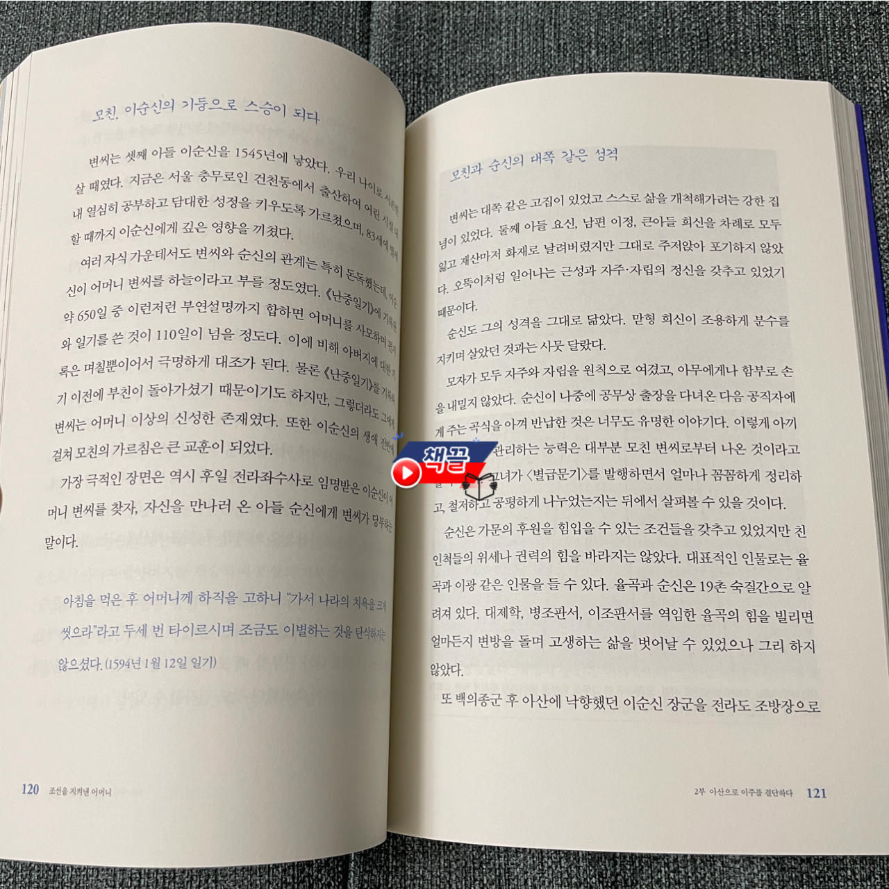 특히 조선 최고의 명장으로 불리는 이순신을 키워낸 초계 변씨에 대해서는 학창시절 역사 시간에 배운 적이 없었는데, 이번에 읽게 된 책에서 새롭게 알게 된 것들이 많다. <조선을 지켜낸 어머니>는 이순신의 어머니 변씨에 대한 이야기를 담고 있다.