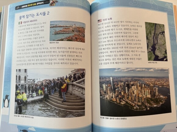 이탈리아 베네치아에서 해수면 상승에 대비하는 모세 프로젝트와 약 2만 명을 수용할 수 있는 수상도시를 건설하고 있는 몰디브의 과학정보 및 해수면 상승에 대한 대비책이 담겨있어요.