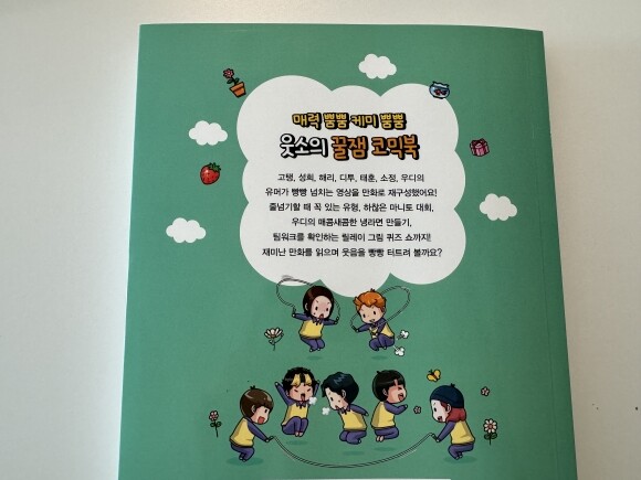 고탱, 성희, 해리, 디투, 태훈, 소정, 우디의 재미있는 이야기와 유머가 가득 담긴 만화책 웃소.