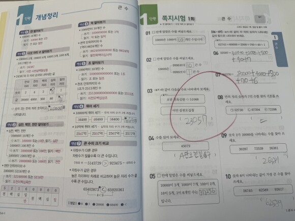 4학년 1학기 수학 개념을 한 번씩 공부했기 때문에 간략한 개념을 읽고 쪽지시험 풀며 빠짐없이 정리할 수 있어요.