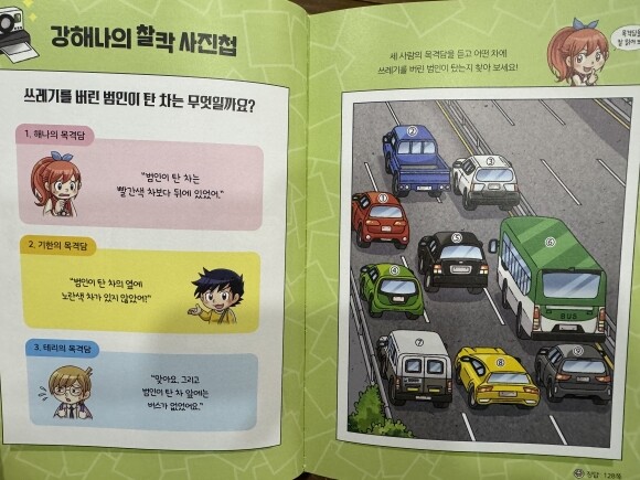 테리의 똑똑 두뇌 대결 길 찾기와 강해나의 찰칵 사진첩을 보며 쓰레기를 버린 범인을 찾아내는 놀이도 할 수 있어요.