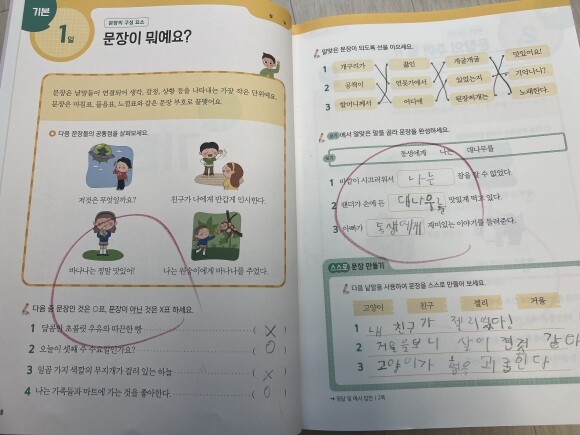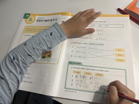 평소 쓰는거 싫어하는데 초끝으로 문장글쓰기 접근했더니 술술 잘 쓰고 있어 엄마는 마음에 쏙 드는 교재를 찾은듯 합니다.