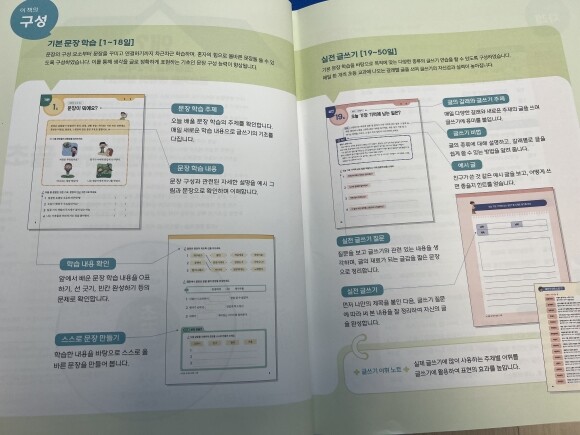 메가스터디북스 초끝 문장학습 글쓰기 교재는 기본 문장 학습을 시작으로 실전 글쓰기 까지 50일 동안 천천히 연습하며 글을 쓸수 있는 교재입니다.