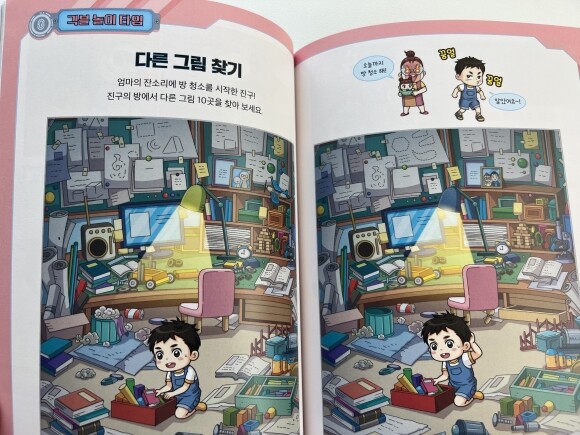 쉬어가는 코너로 다양한 퀴즈와 다른 그림 찾기 등 참여할 페이지도 있어요.