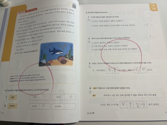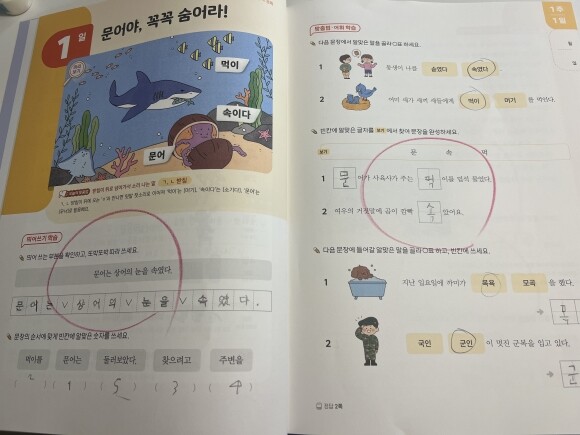 문제집 속에 등장하는 그림들도 알록달록 귀여워 보는 재미도 있나봐요~