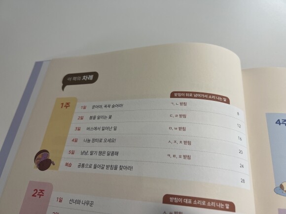매일 2장씩 풀도록 되어있고 25일 동안 완성할 수 있는 국어 교재랍니다.