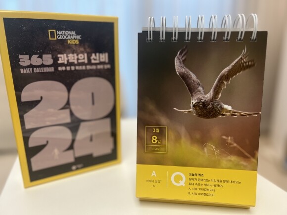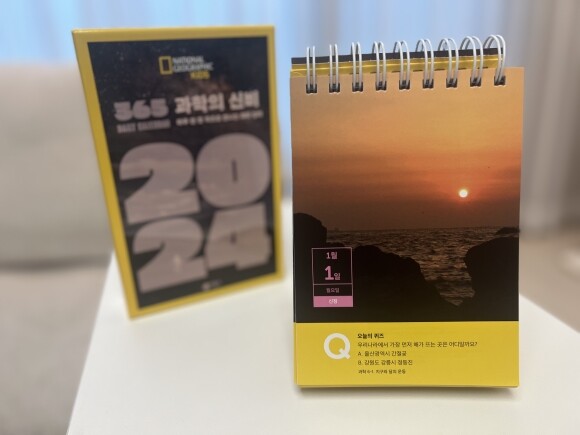 아직 2024년 달력을 준비하기 전이라면 내셔널지오그래픽키즈의 하루 한 장 퀴즈로 만나는 과학일력으로 준비해 보세요.
