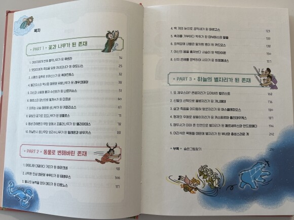 그리스 로마신화 2에서는 꽃, 동물, 별자리에 관련된 신들의 이야기가 주제별로 나뉘어 담겨있어 읽는 재미가 있어요. 상상하거나 예측하지 못한 이야기가 가득하니 아이들도 집중해 읽어나갈 수 있는 것 같아요.