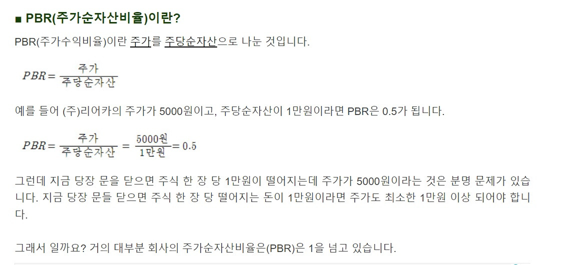 여기서 기본 기업 분석이라고 할 수 있는 밸류에이션을 측정 할 수 있는 지표 몇가지를 짚고 넘어 가기로 하자. PBR , PER 등 .