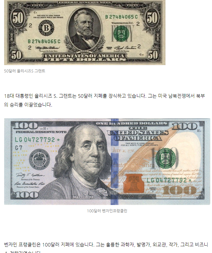 어느나라나 당대의 내노라 하는 인물들이 있고 시대 정신을 대표 하기도 한다. 미국의 지폐 체계 또한 다르지가 않다.