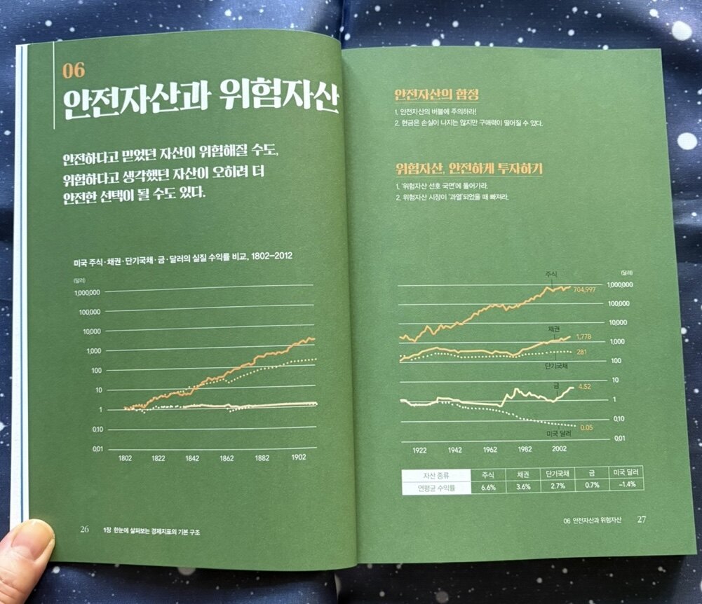 가장 인상 깊었던 건 2장의 깊이였다. 경기의 호황·불황 국면을 구분해 투자 전략을 짜는 법을 배우며, 지금 우리가 어디쯤 와 있는지를 몇 번이고 곱씹었다. ‘실질 수익률’이라는 개념도 이 장에서 처음으로 명확히 다가왔다. 그간 유튜브에서 듣던 모호한 경제 용어들이 한순간에 맑게 정리되면서, ‘왜 단순한 매수·매도 타이밍 예측조차 어려운가’에 대한 해답이 보였다.