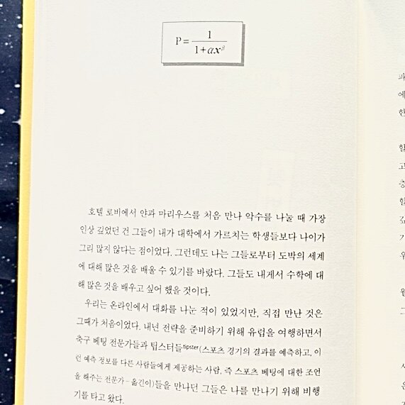 맨 먼저 1장에서 저자는 특이한 이력을 소개한다. 스포츠 경기의 승패를 예측하는 방정식을 만들어 공개적으로 발표한 일이다. 이뿐만 아니라 저자는 수와 수학적 사고를 이용하면 세상의 많은 일들을 예측할 수 있다고 전한다.