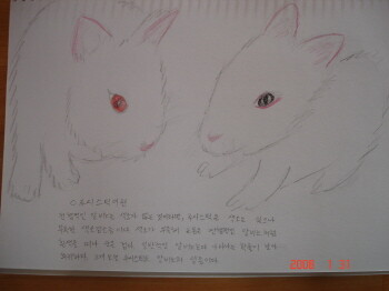 시키지도 않았는데 두아이 모두 일기장에 알비노에 대해서 적어본다. 예쁜 알비노 그림까지 그리길래 아예 스케치북에 가장 귀여운 알비노를 그려 보도록 하였다.