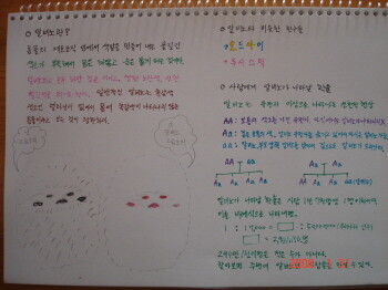 먼저 알비노에 대해서 적어보고, 귀여운 아메리칸 피그리 고슴도치중 정상인 것과 알비노인 것을 비교해서 그려보았다. 알비노는 몸이 새하얗고 눈, 코, 발 부분이 빨갛거나 분홍색을 띄는 것이 특징이다. 책에 나와있는 유전적으로 알비노가 태어나는 경우를 그려보았다. 확률은 매우 적은데, 그래도 우리나라 인구 오천만명중 삼천명 정도가 나올 수 있다는 계산이 나왔다.