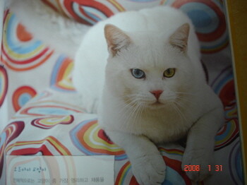 실제 책에 나온 오드아이 고양이; 엄마의 눈이라 그런가 그림과 사진이 어쩜 이렇게 똑같을수가!!!!