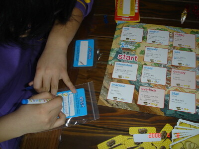 게임판과 게임에 필요한 모든 것들을 올려놓았다. 그리고 5분간 게임판에 나와있는 단어를 외우도록 했다. 게임이 뭐 영어단어를 외우는 거냐며,  안하겠다는 아이를 구슬러서 일단 해보기로 했다.