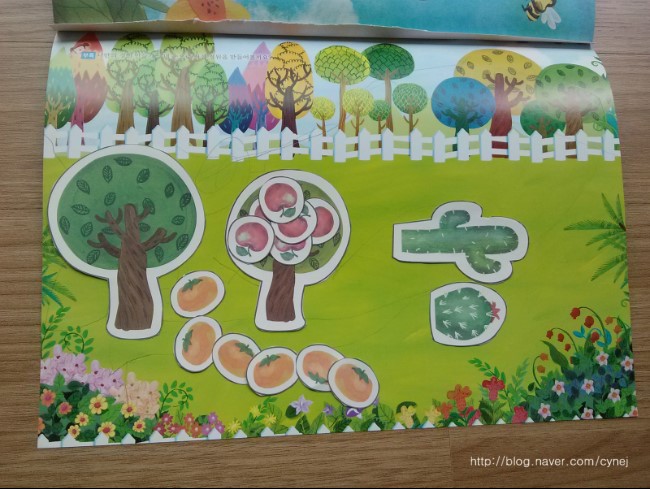 어디에 붙이라는 말없이 오려주었는데~~~ 아이가 사과를 나무에 붙이더라구요...^^*