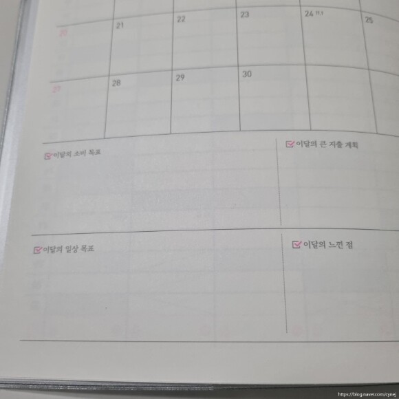 이달의 큰 지출 계획, 이달의 느낀 점을 적을 수 있는 공간이 있어서 좋네요.