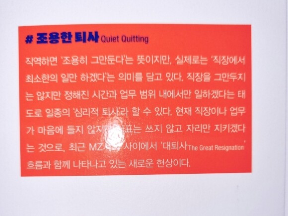불만으로 표정은 좋지 않았고 나의 기분이 행동으로 나타나는 등 지금 생각하면 잊어버리고 싶은 것이 가득했다. 지금은 그런 행동을 반복하지 하지 않기 위해 신중하게 지원서를 썼고 면접을 통해 현 회사에 입사했다.