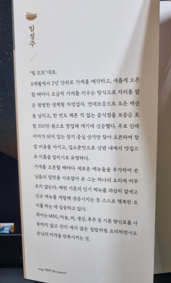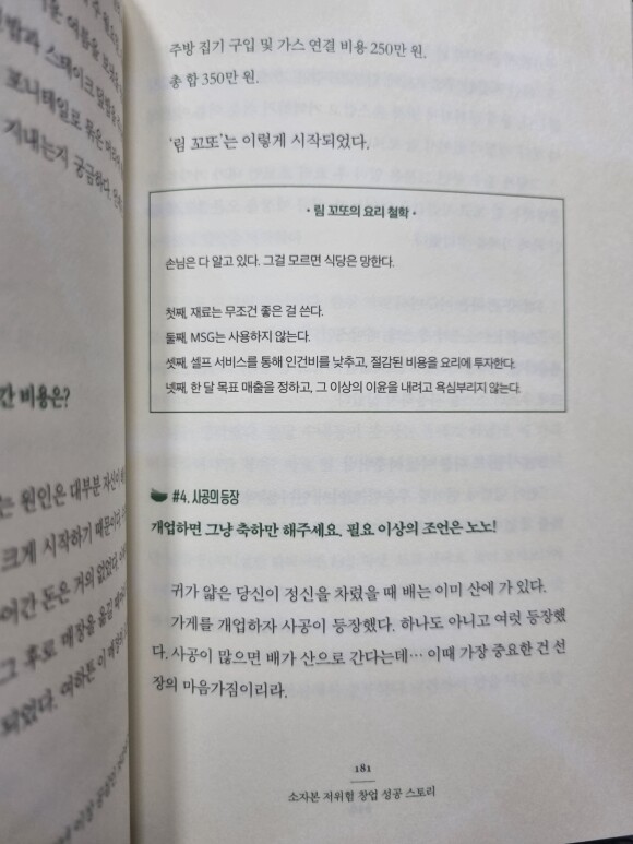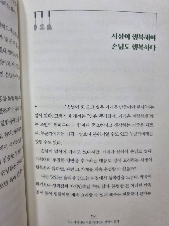 책을 읽으면서 제일 느꼈던 점은 맛에 대한 자부심도 있지만, 정확한 고객의 니즈와 상황에 맞는 판단이다.
