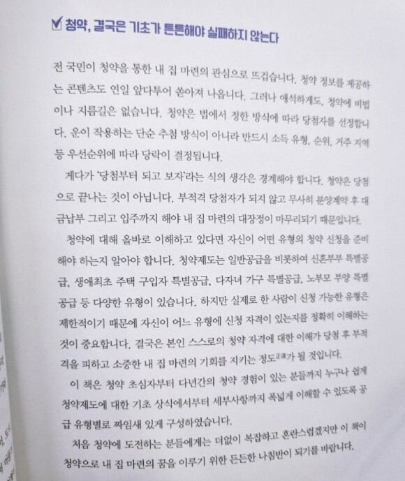사회초년생부터 준비하면 좋기 때문에 청약을 도전하는 사람 모두에게 이 책을 읽어 보길 추천한다.