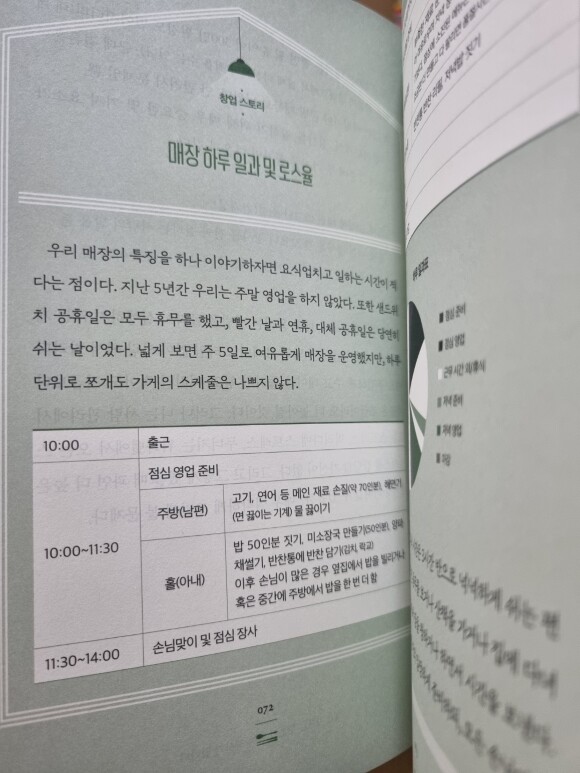 매장 하루 일과를 보면 요식업치고 일하는 시간이 적었다. 5년동안 주말 영업을 하지 않았다.
